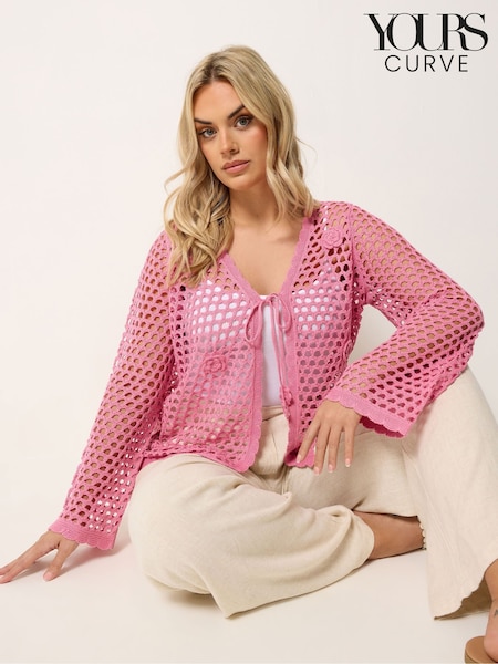 وردي - كارديغان محبوك Pointelle من Yours Curve