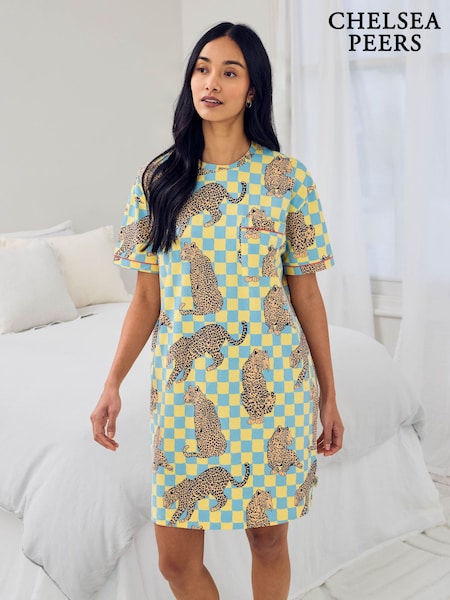 Chelsea Peers Checkerboard Leopards Print Nightshirt