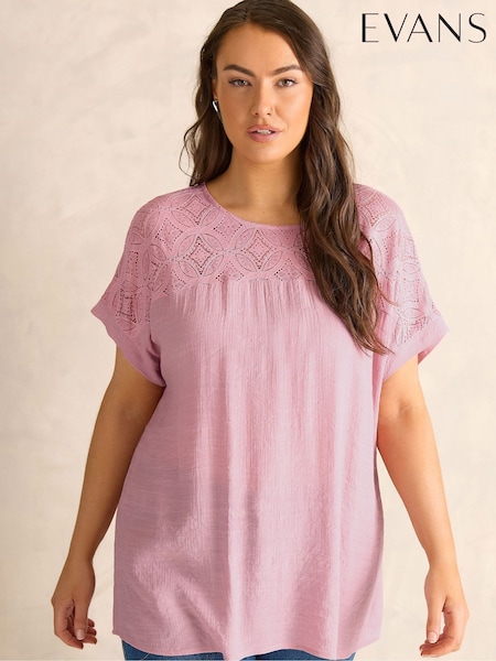 وردي - تيشرت بياقة حرف V من Evans بنسيج سلوب