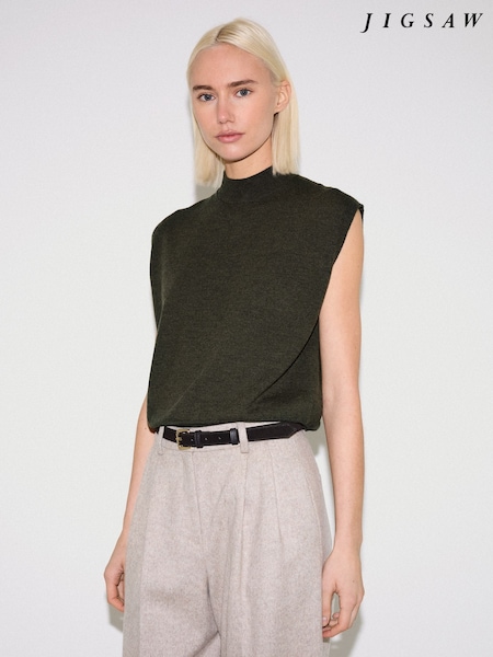 أخضر - رداء عُلوي بلا أكمام من صوف ميرينو Cocoon من Jigsaw