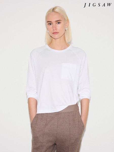 أبيض - Jigsaw Long Sleeve Patch Pocket T-Shirt