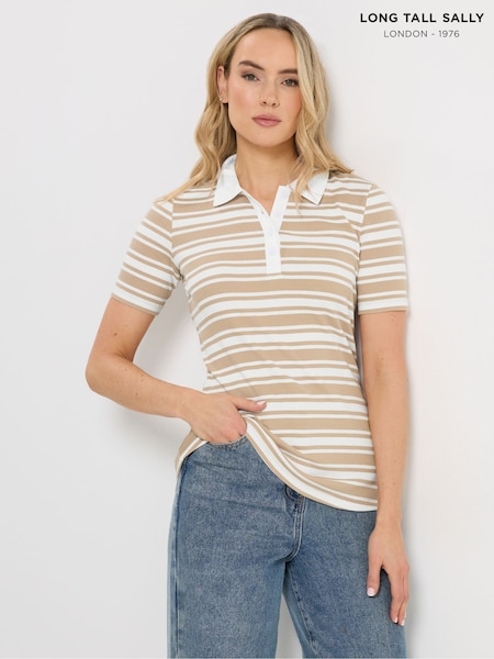 لون طبيعي - تيشرت بولو مخطط من Long Tall Sally
