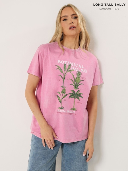 Long Tall Sally Botanical Palms Slogan Oversized T-Shirt