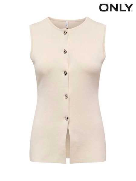 كريم - ONLY Knitted Vest With Metallic Button Detail