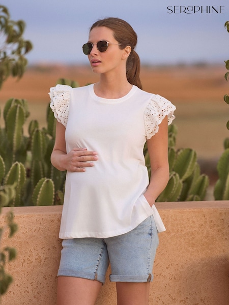 أبيض - تيشِرت قطن مودال بكُم قصير للحوامل من Seraphine