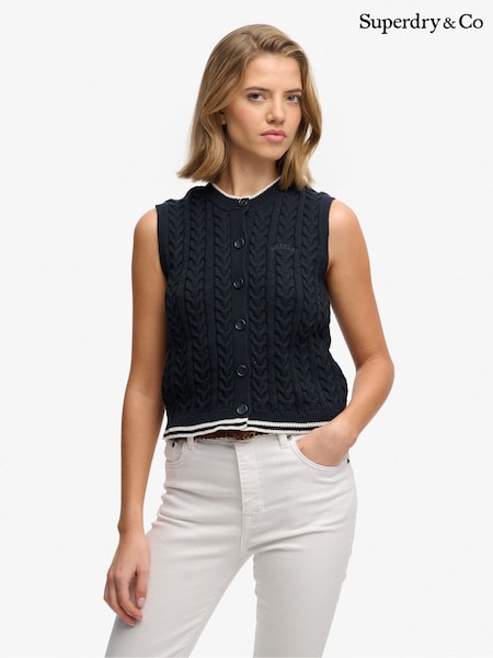 بلوزة بدون أكمام محبوكة بنمط كابل بأزرار أمامية من Superdry
