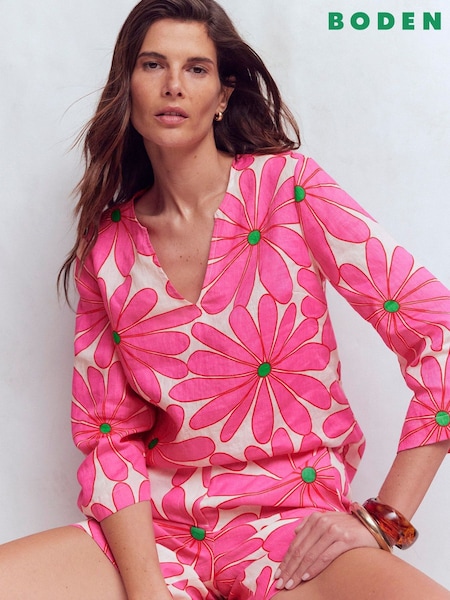 وردي - توب Leah من الكتان كُم قصير من Boden
