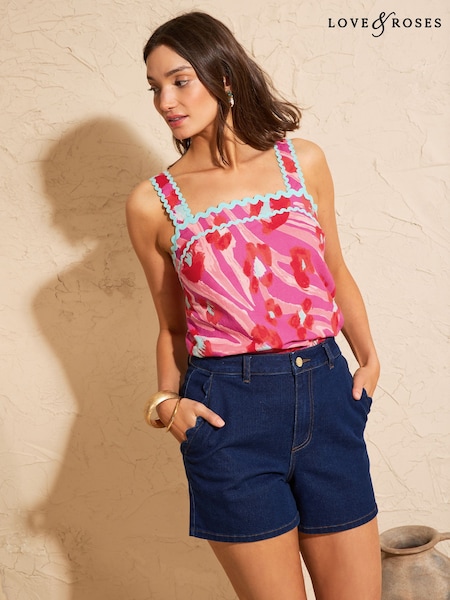 Love & Roses Animal Print Ric Rac Cami