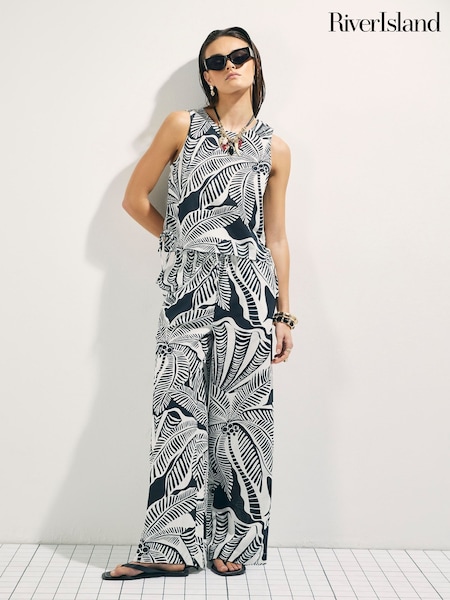 رداء عُلوي بلا أكمام بطبعة شجر نخيل يحتوي على كتّان من River Island