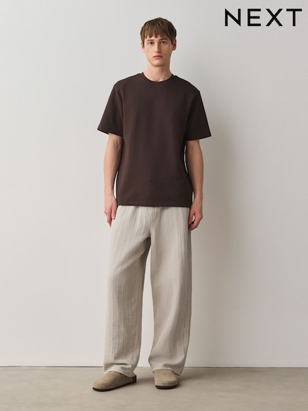 بني - بنطلون كتان غني بنقشة مربعات بقصة واسعة وخصر مطاطي من EDIT