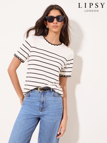 Lipsy Monochrome Stripe Scallop Detail T-Shirt