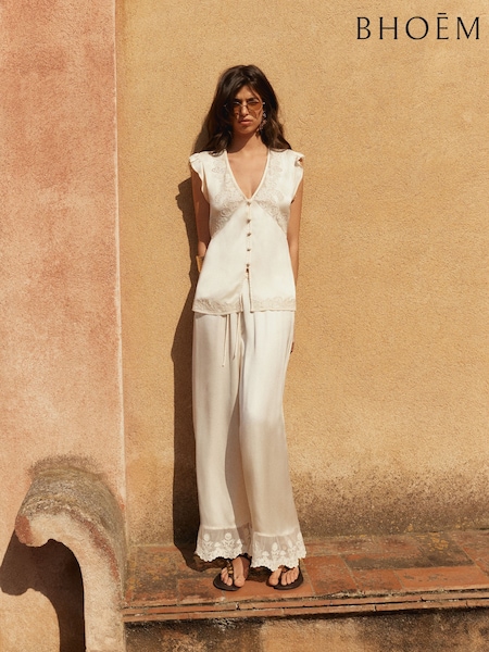 بنطلون ستان بتصميم انسيابي سهل الارتداء مطرز بدانتيل