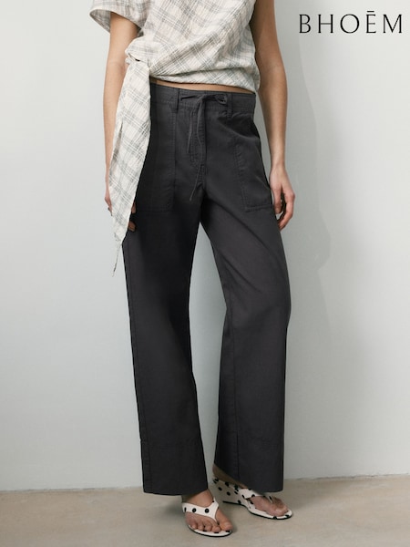 لون محايد - محايد ـ بنطلون كتّان 100% برِجل واسعة بتفصيل رباط من BHOEM