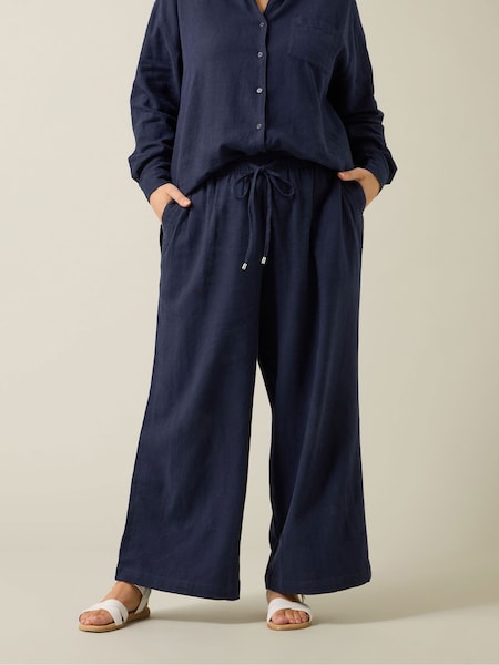أزرق - بنطلون غني بالكتان برِجل واسعة من Evans