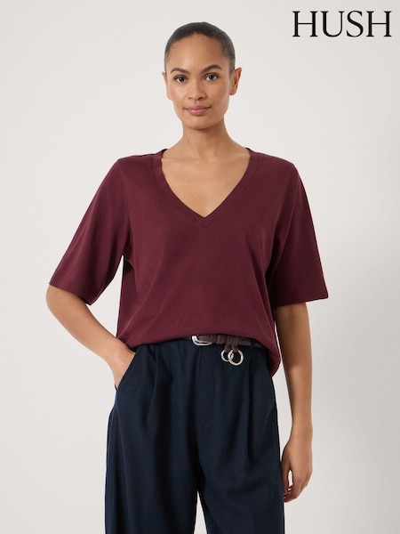 Hush Red Reece V-Neck Drapey T-Shirt