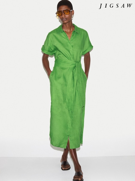 Jigsaw Green Linen Midi Shirt Dress