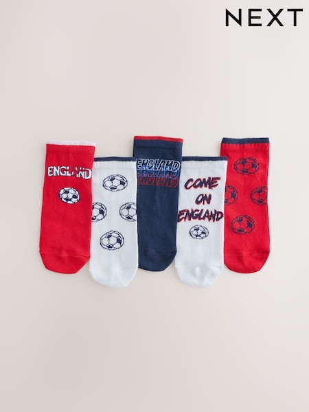 Red/White/Navy Blue Football Cotton Rich Trainer Socks 5 Pack