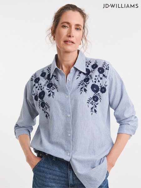 JD Williams Blue Embroidered Stripe Relaxed Shirt