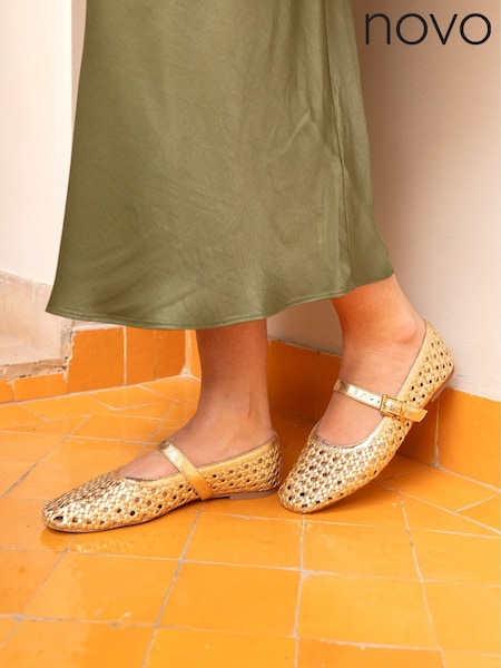 Novo Gold Wide Fit Faye Woven Mary Jane Flat Shoes