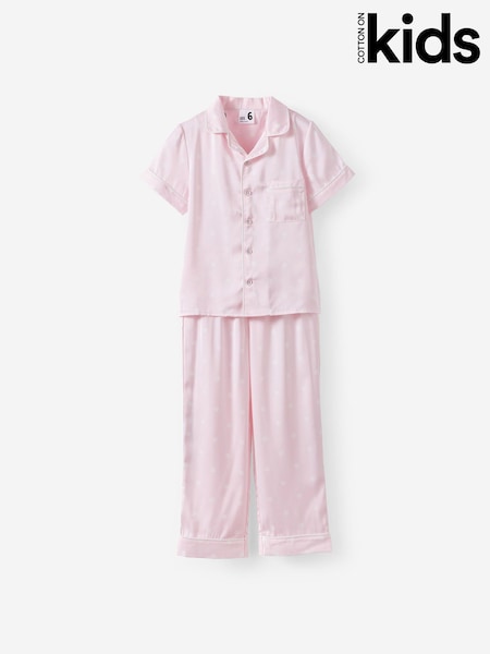 Ecru/Pink Satin Short Button Through Pyjamas (3-16yrs)