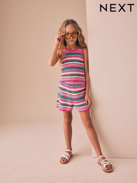 Pink Stripe Summer Knitted Shorts Set (3-16yrs)