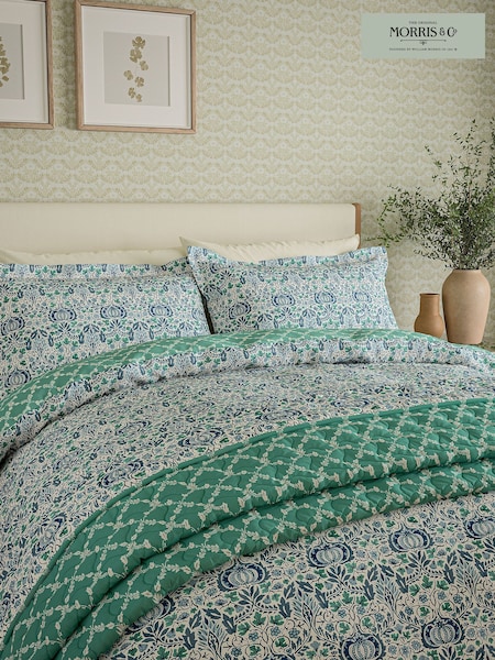 Morris & Co Green Little Chintz Quilted Throw