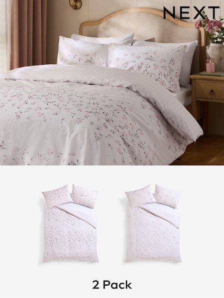 White Pink Floral Reversible Duvet Duvet Cover and Pillowcase Set