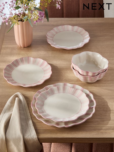 12 Piece Pink Hand Painted Stripe 12 Piece Set