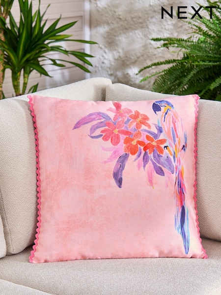 Pink 50 x 50cm Indoor Outdoor Floral Parrot Cushion