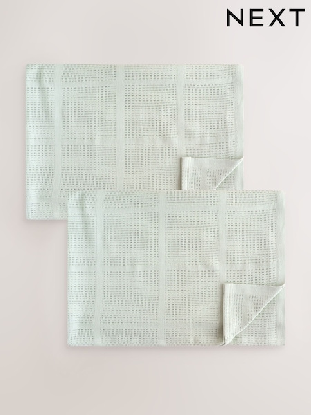 2 Pack Sage Green Cotton Baby Cellular Blankets