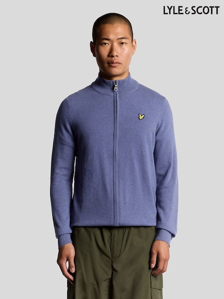 Lyle & Scott Purple Lambswool Blend Zip Through Cardigan