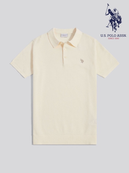 U.S. Polo Assn Cream Moss Stitch Knit Polo Shirt