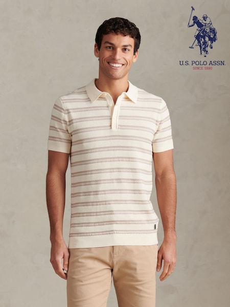 U.S. Polo Assn Cream Stripe Open Knit Polo Shirt