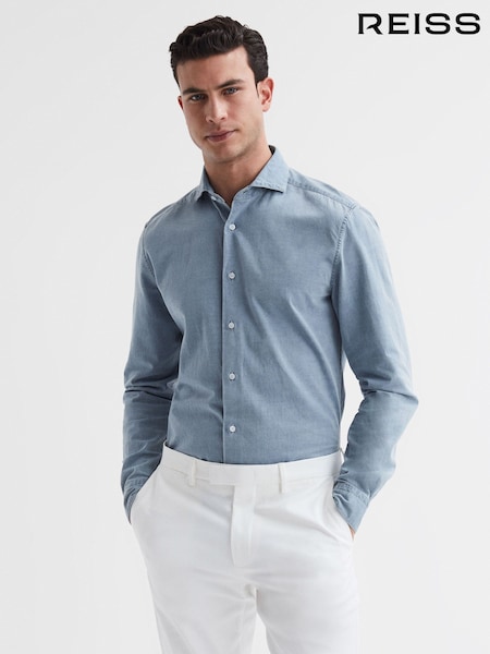 Reiss Blue Draper Washed Cotton Chambray Shirt