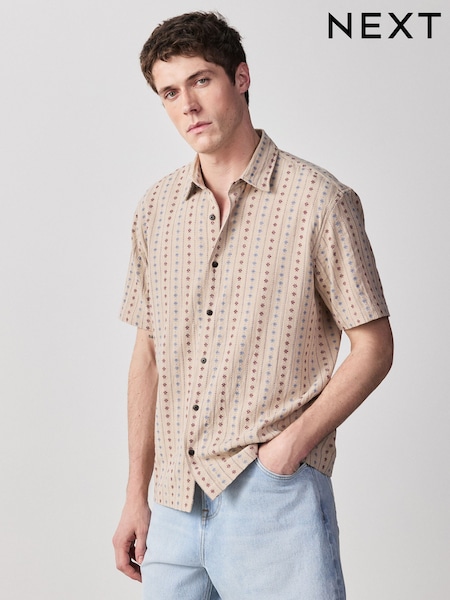 Brown Stripe Jaquard Short Sleeve Shirt