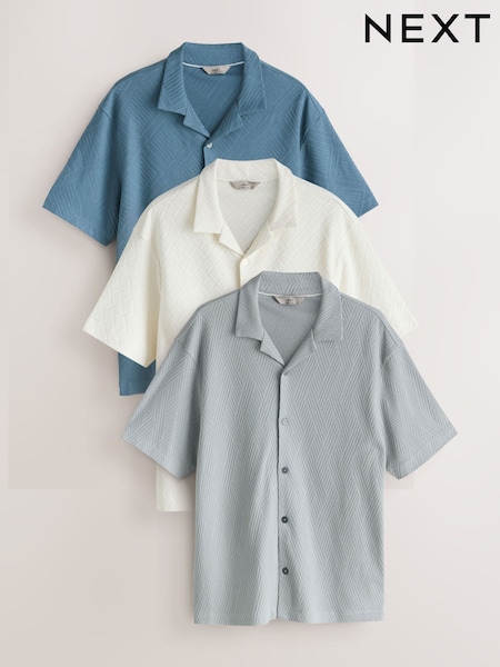 BlueWhite/Grey Short Sleeve Revere Collar Textured Jersey Shirts 3 Pack