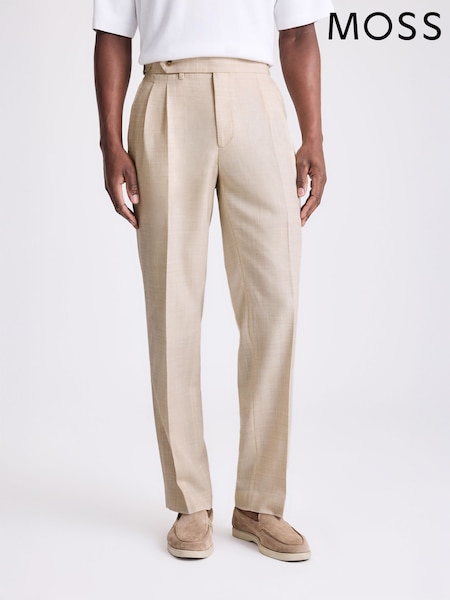 Neutral Brown Signature Regular Tapered 100% REDA Marino Wool Smart Trousers With Elasticated Back