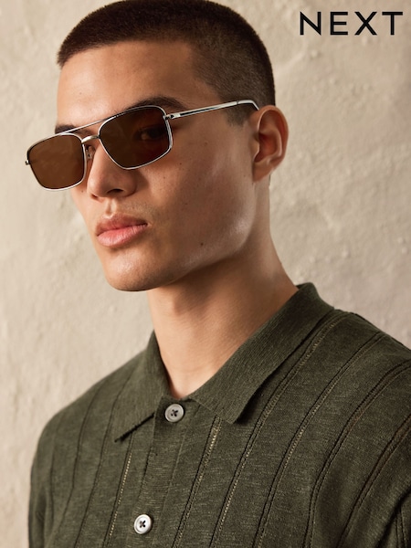 River Island Silver Hexagonal Blue Lens Sunglasses