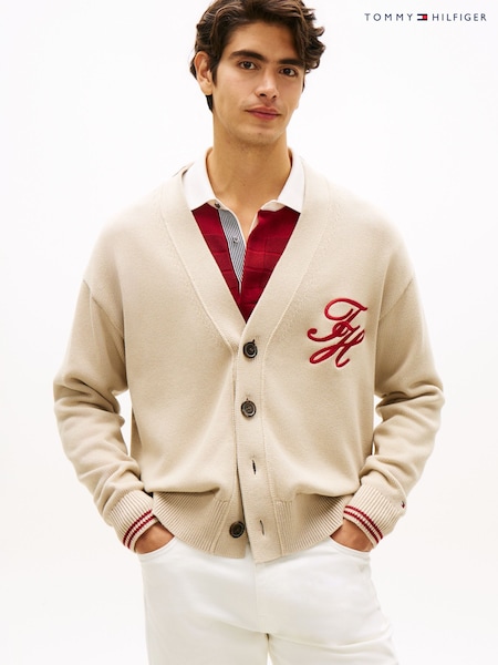 Tommy Hilfiger Cream Smart Casual Waffle Knit Lambswool Blend Cardigan