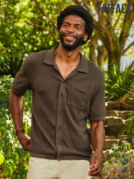 The Set 2 Pack Brown Textured Button Through Knitted Shirt Chocolate Brown