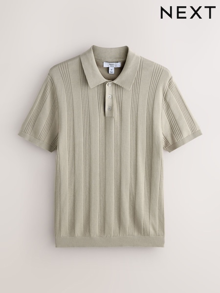 Neutral Regular Fit Cotton Rich Pointelle Knit Polo Shirt
