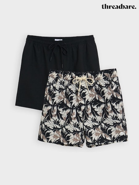 Threadbare Cream Leaf Print Seersucker Swim Shorts 2 Pack