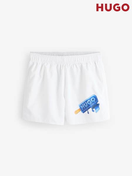 HUGO White Graphic Swim Shorts
