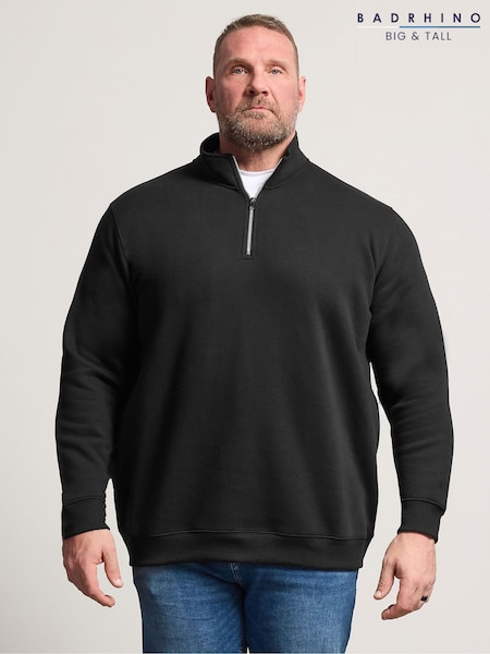 BadRhino Big & Tall Black Loopback Half Zip Polo Sweat Top