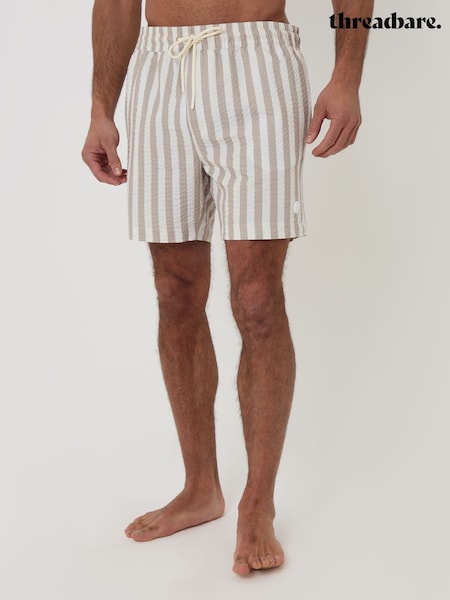 Threadbare Natural Stripe Seersucker Swim Shorts