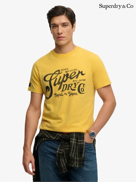 Superdry Yellow 100% Cotton Japanese Vintage Logo Graphic T-Shirt