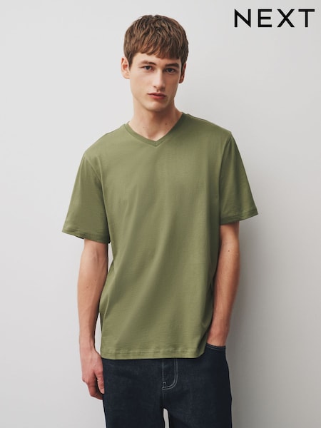Olive Green Contrast Stitch Regular Fit Heavyweight T-Shirt