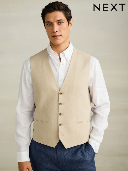 Neutral Check Cotton Linen Blend Suit Waistcoat