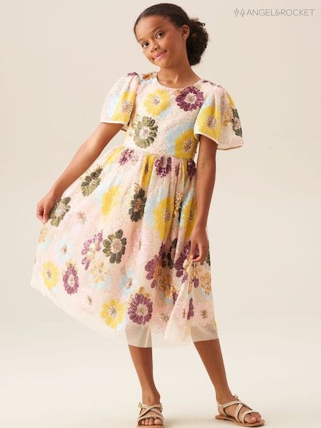 Angel & Rocket White Verity Flower Sequin Dress