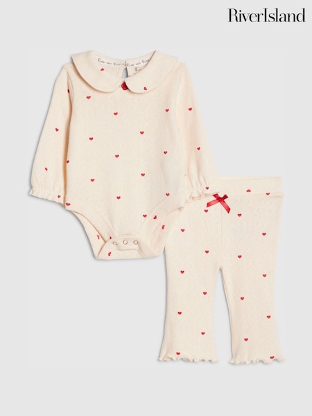 River Island Cream Collared Bear Sweatshirt & Ditsy Leggings Set